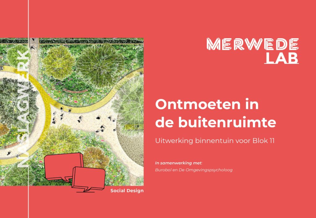 De fysieke omgeving kent een breed palet aan type ontmoetingen: van een toevallige ontmoeting, tot groepsinteractie of zelfs actieve ontmoetingen. Deze ontmoetingen ontstaan onder andere door de activiteiten waartoe de omgeving je uitnodigt, zoals het samen sporten of het uitlaten van de hond. Hiervoor is een ontwerpuitwerking voor Blok 1A in Merwede gemaakt.
